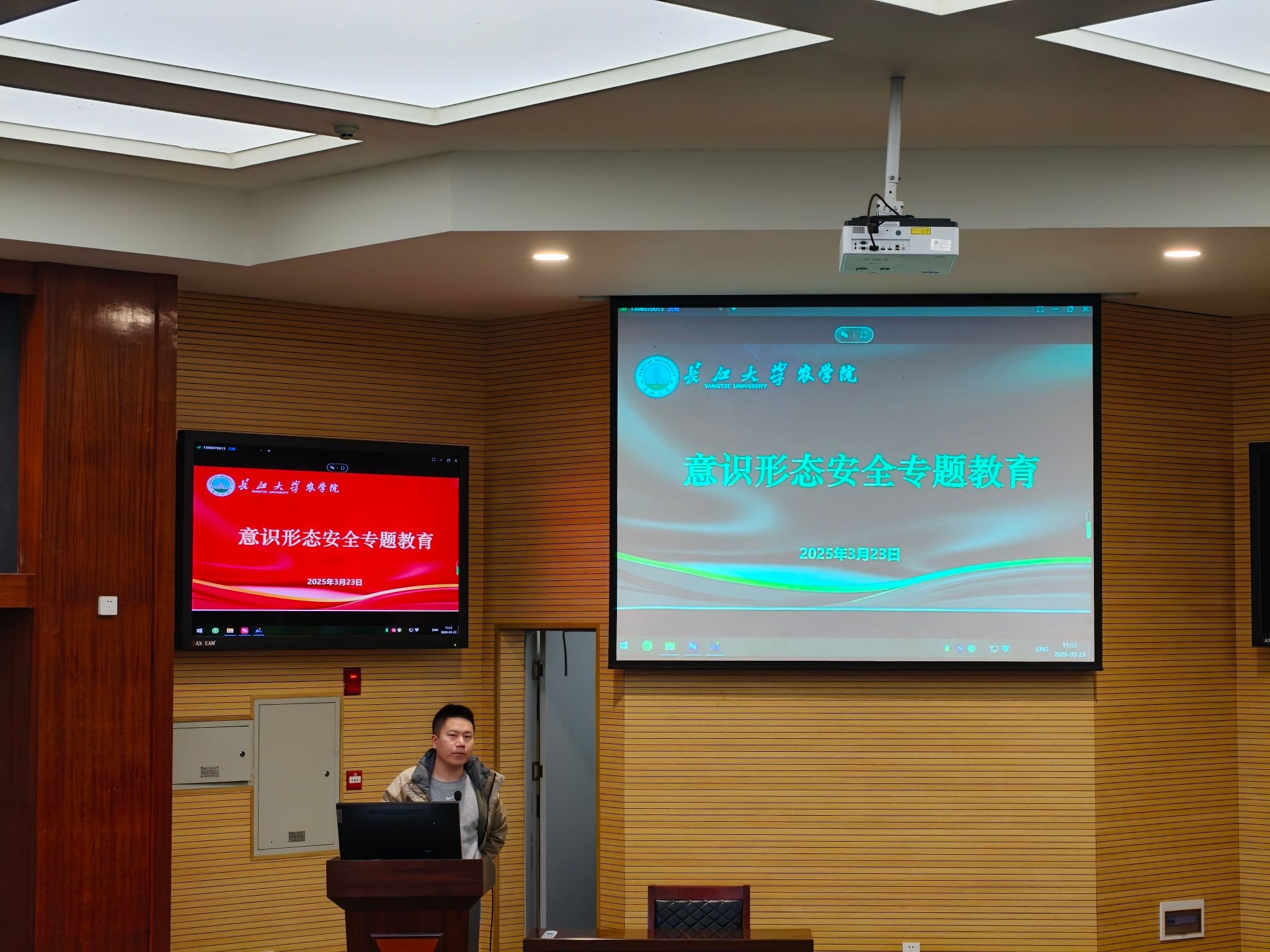 (通讯员 安菲菲 何遥)为切实筑牢校园意识形态安全防线,提升师生安全意识与思想觉悟,农学院于 3 月 23 日在农科大楼 1056 报告厅组织开展 2026 年意识形态安全专题教育活动。学院党委副书记尹小华、学工办主任黄承石和学生干部代表齐聚参与,共同上好一堂思想安全“必修课”。