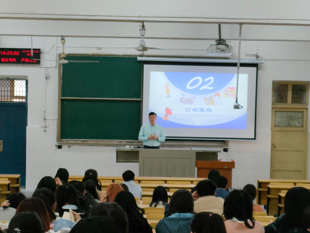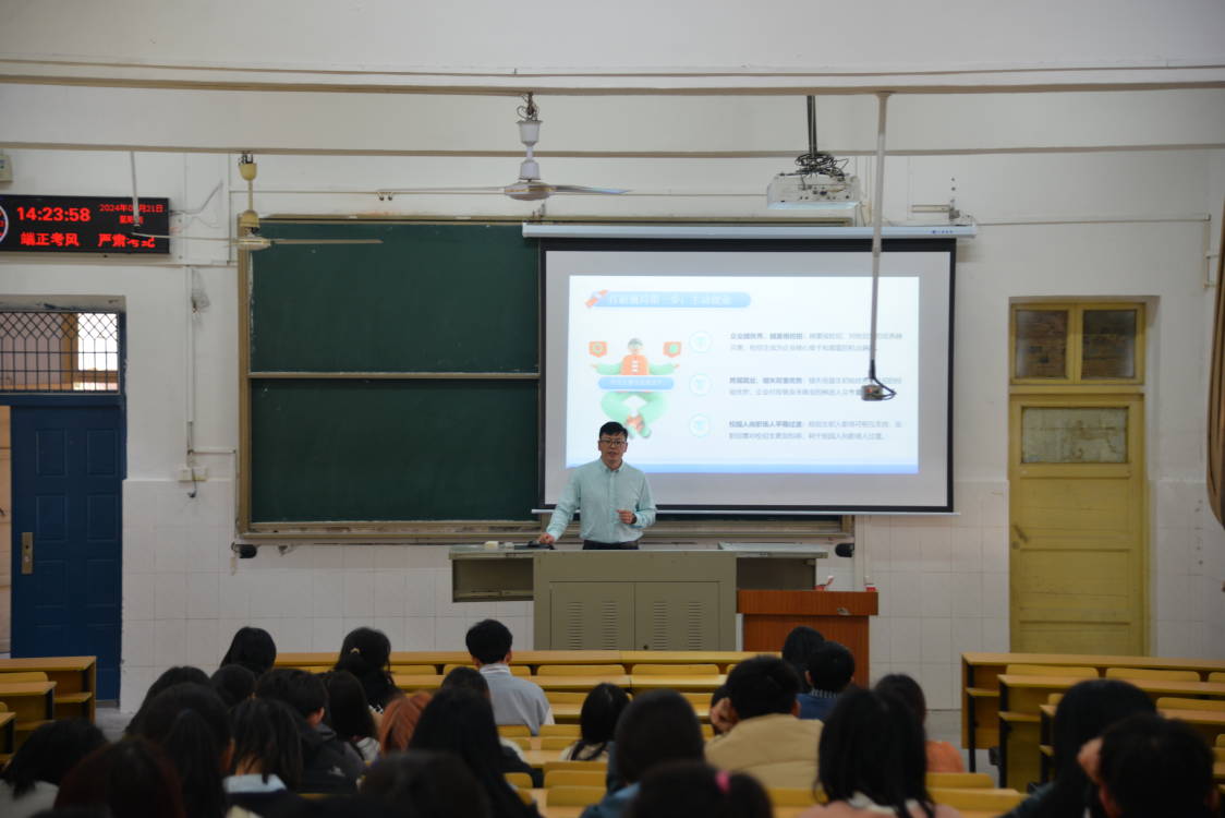 (见习记者 曹淏郁/文 邬道瑾/摄)为了帮助同学们了解所学专业及其发展前景,并为我院学生的职业规划提供不可或缺的指导,农学院于3月21日下午2时在二号教学楼T1室举办了本科生就业指导报告讲座。此次讲座邀请了广东中迅农科股份有限公司HR中心总经理丁瑞国为主讲,兼职辅导员李洪洲、部分本科生参会。