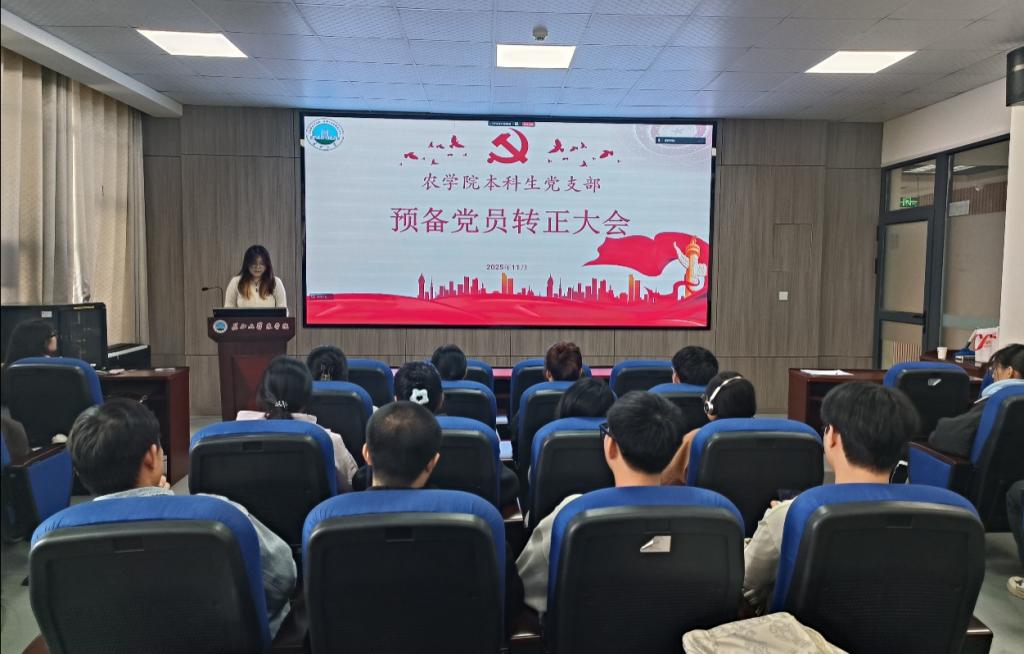 (通讯员 武芊睿)为进一步壮大和优化党员队伍,增强党组织的凝聚力与战斗力, 11月19日,农学院本科生党支部在农科大楼3073召开2025年下半年预备党员转正大会,讨论预备党员肖雅萱等3名同志的转正问题。应到会党员19名,实到会19名,应到会有表决权的正式党员7人,实到会7名,超过半数,符合党员发展流程。会议由党支部书记黄承石老师主持并作总结发言。