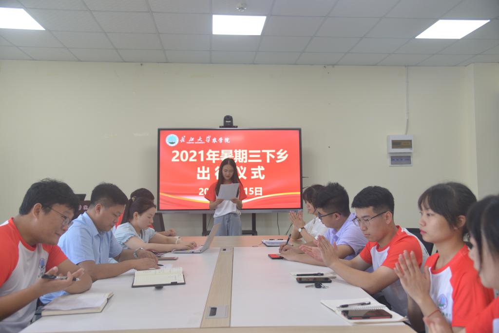 通讯社讯(学生记者 罗旖柔)7月15日,农学院乡村振兴实践队全体成员在农科大楼3071会议室召开2021年暑期“三下乡”出征仪式暨青年红色筑梦之旅出征仪式,党委副书记谭亮魁、分团委书记侯聪、辅导员付雪娇、林香亮参加此次出征仪式。