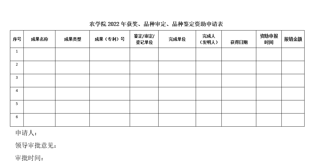农学院2022年获奖、品种审定、品种鉴定资助申请表