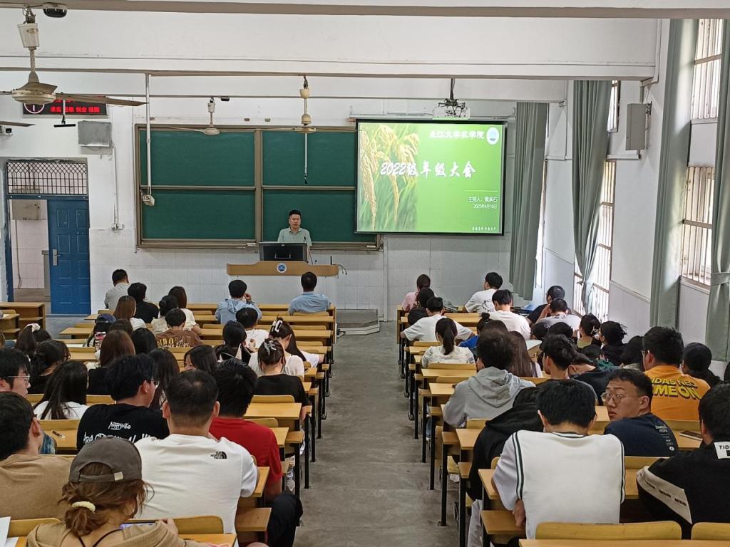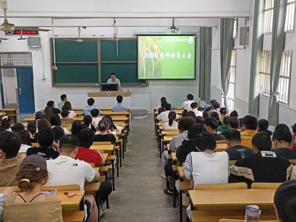 (通讯员 黄承石)为了调动大三学生考研积极性,让同学们更好地挖掘自身潜能,把握深造机会。4月10日下午2:30,我院于2教T2召开农学院2022级考研动员大会。参加此次会议的有学院副院长张运波,党委副书记尹小华,青年教师代表龚攀、程晓琴,学工办主任黄承石以及全体22级学生。本次大会由党委副书记尹小华主持。