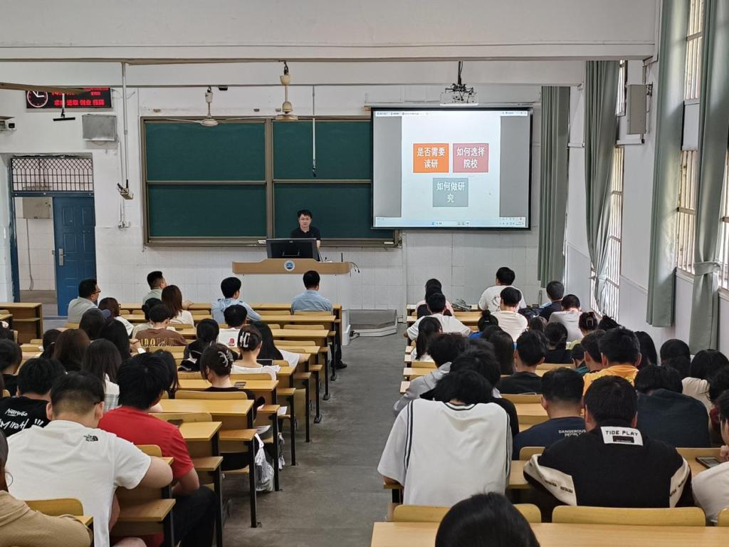会议伊始,学院新引进特任教授龚攀老师,结合个人学习、科研和工作经历,分别从是否需要读研、如何选择院校、如何做研究三个方面为同学们讲述了如何做好自己的研究生规划。