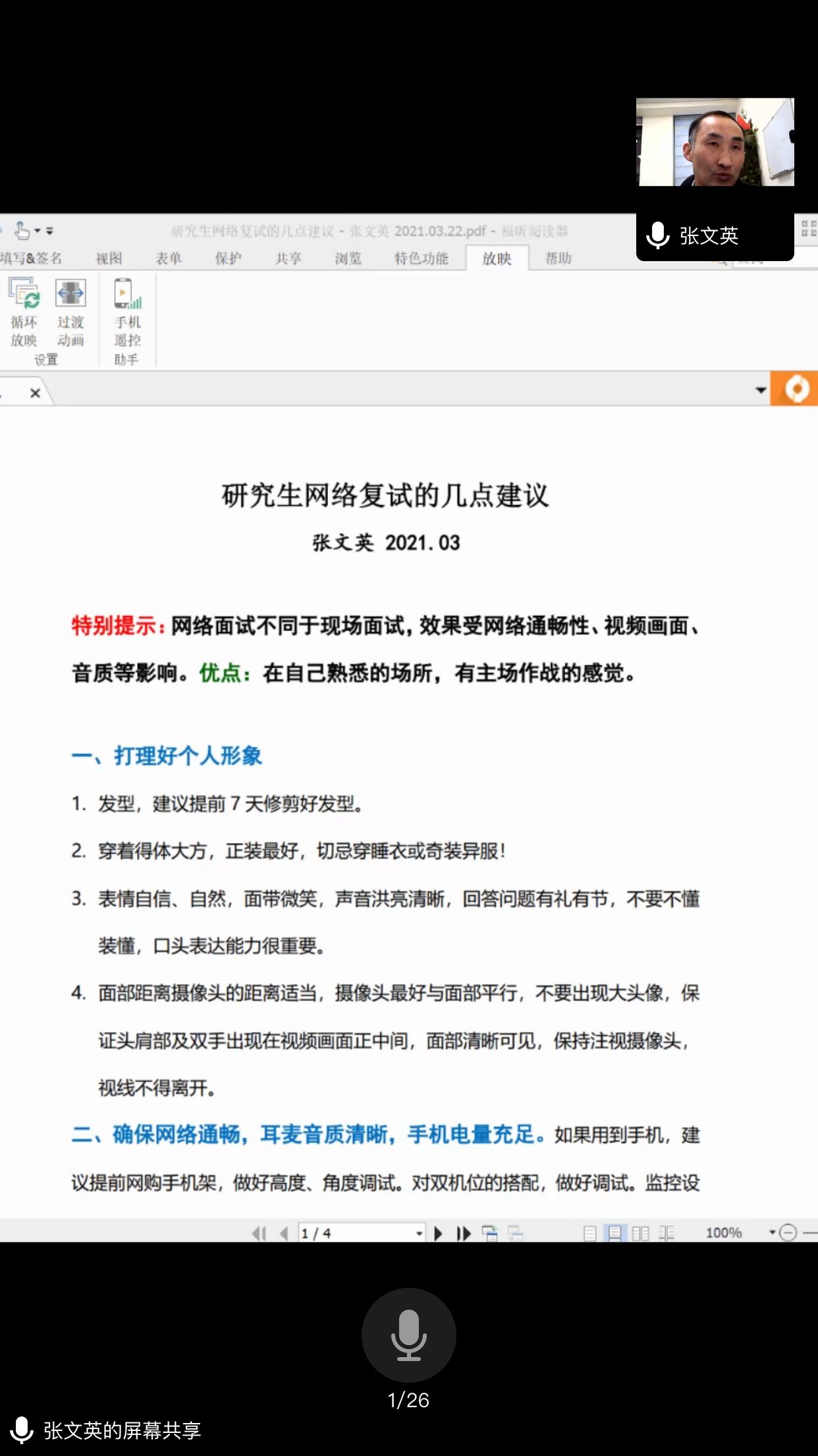 随后,张文英教授结合招生政策和全国考研情况,从各个方面综合分析了今年的研究生招生形势。紧接着张文英教授就研究生网络复试给予宝贵建议。在个人形象方面,参与网络面试的学生应注意发型干净、衣着得体、表情自然。其次由于网络面试不同于现场面试,在硬件设施方面,应确保网络流畅,电量充足,耳机音效良好,参与面试的同学要防患于未然,避免一切不利于面试的意外发生。张文英教授同时还鼓励同学们要和院内老师保持联系,遇到任何困难,要及时向学院教职工求助,学院和老师都是同学们的坚强后盾将不遗余力的帮助同学们解决问题。