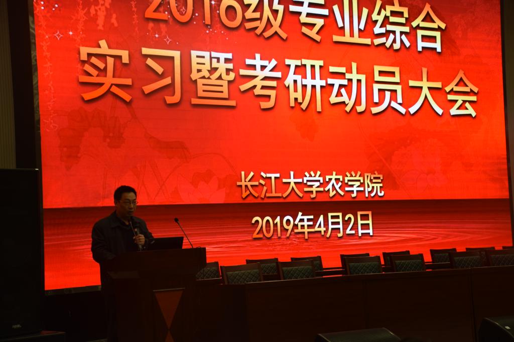 新闻网讯(通讯员 万钰 杨彪鼎)“亲爱的同学们,所谓‘专业综合实习’,基础在专业、关键在综合、核心在实习、保障在安全,志向在考研。”4月2日下午,西校区农科大楼1058会议室传来声声叮咛,农学院2016级专业综合实习暨考研动员大会举行,院长李俊凯教授正在为同学们做相关的部署和动员工作。