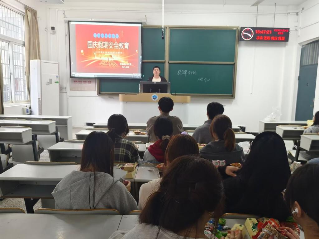 (通讯员 段文洁/文 张孝艺/摄)为切实增强大学生安全防范意识,确保国庆假期期间人身与财产安全,9月25-28日,农学院全体研究生、本科生陆续召开“国庆假期安全教育”主题班会。班会由班主任主持,全体同学参加。