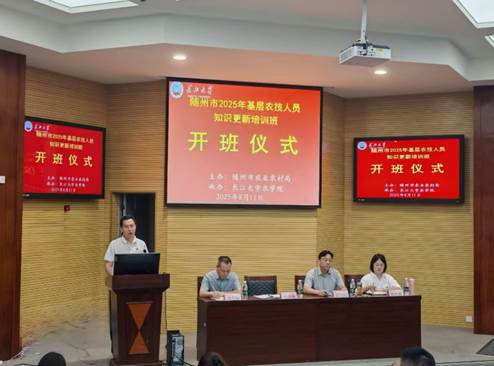 8月11日培训开班,随州市农业农村局副局长陈训刚、农技推广中心副主任鲍凤霞、长江大学农学院党委书记周锦华、副院长唐生标等出席开班仪式。